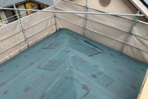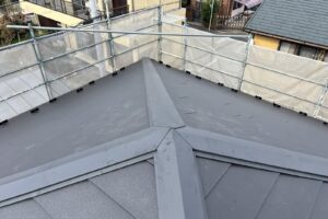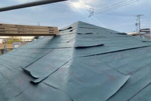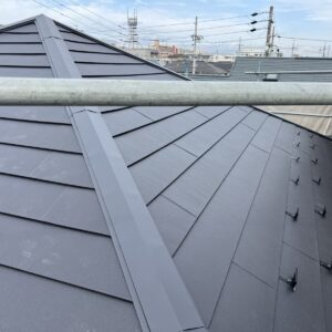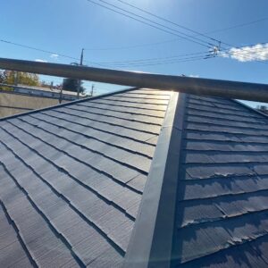O様邸 スーパーガルテクトカバー工事 2025/12/26 Before After 施工写真 スレート劣化 施工中 ルーフィング貼り 施工後 施工後 施工内容 項目① スレートが劣化していた為、スーパーガルテクトカバー工事を施工しました。